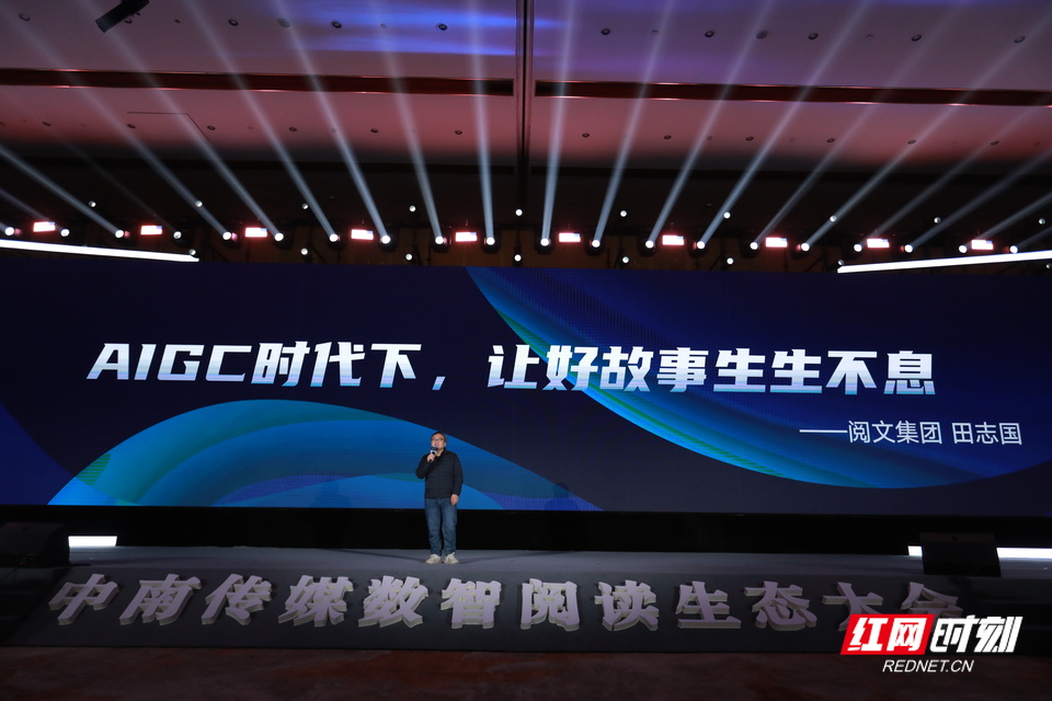 4月22日,在2026中南传媒数智阅读生态大会现场,阅文集团副总编辑田志国带来《AIGC时代下,让好故事生生不息》主题分享。