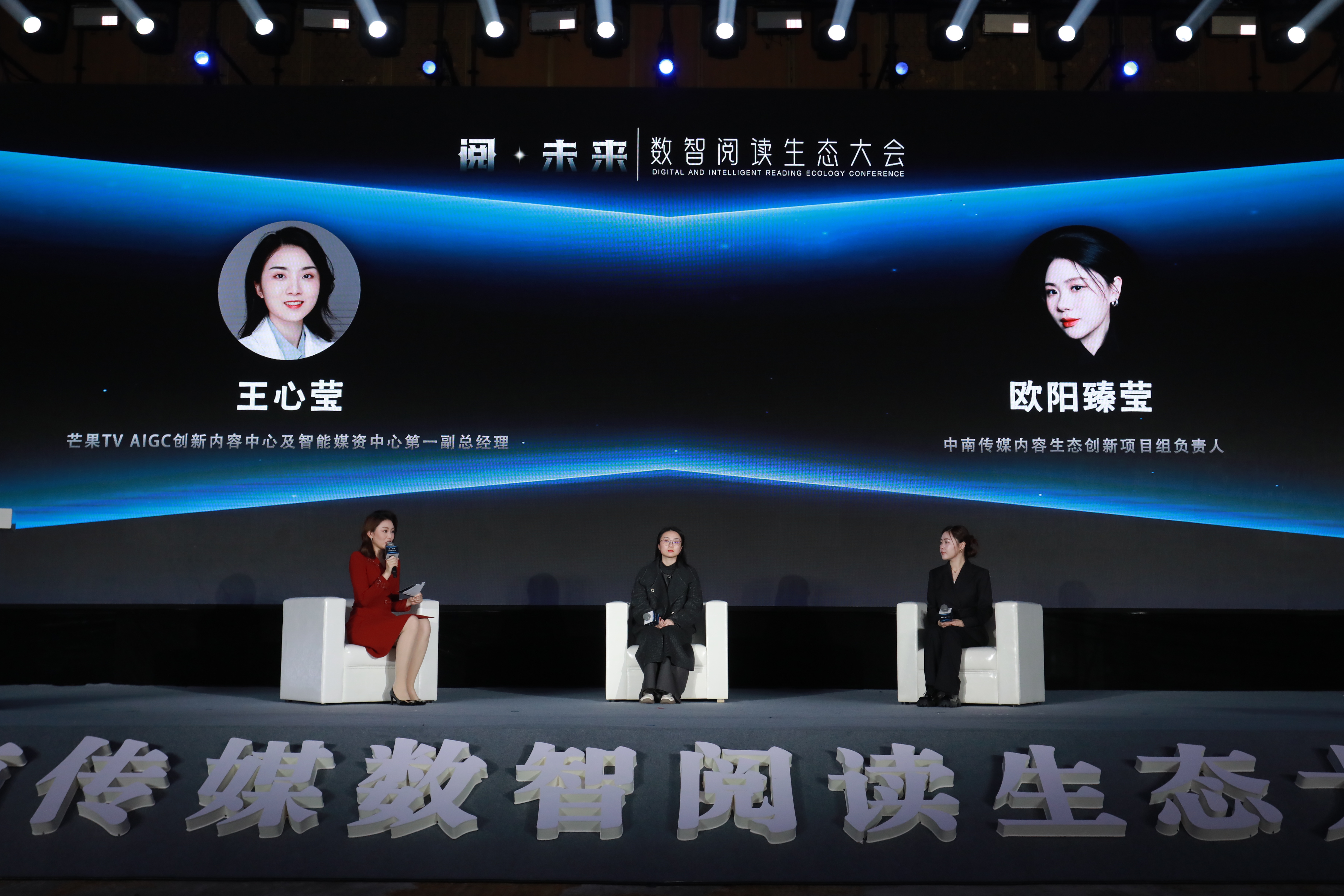 芒果TV AIGC创新内容中心及智能媒资中心第一副总经理王心莹、中南传媒内容生态创新项目组负责人欧阳臻莹同台对话。