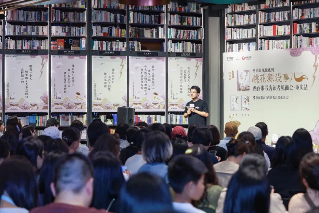 10月15日晚19:30,作家马伯庸来啦!在西西弗总部概念店重庆问闻书店的读者见面会上,除了随处可见他的见微系列新作《桃花源没事儿》,马伯庸也为大家呈现了一场交织着笑声、掌声的文学“桃花源”,有读者甚至感言:如同亲临一场“梗”直脱口秀!