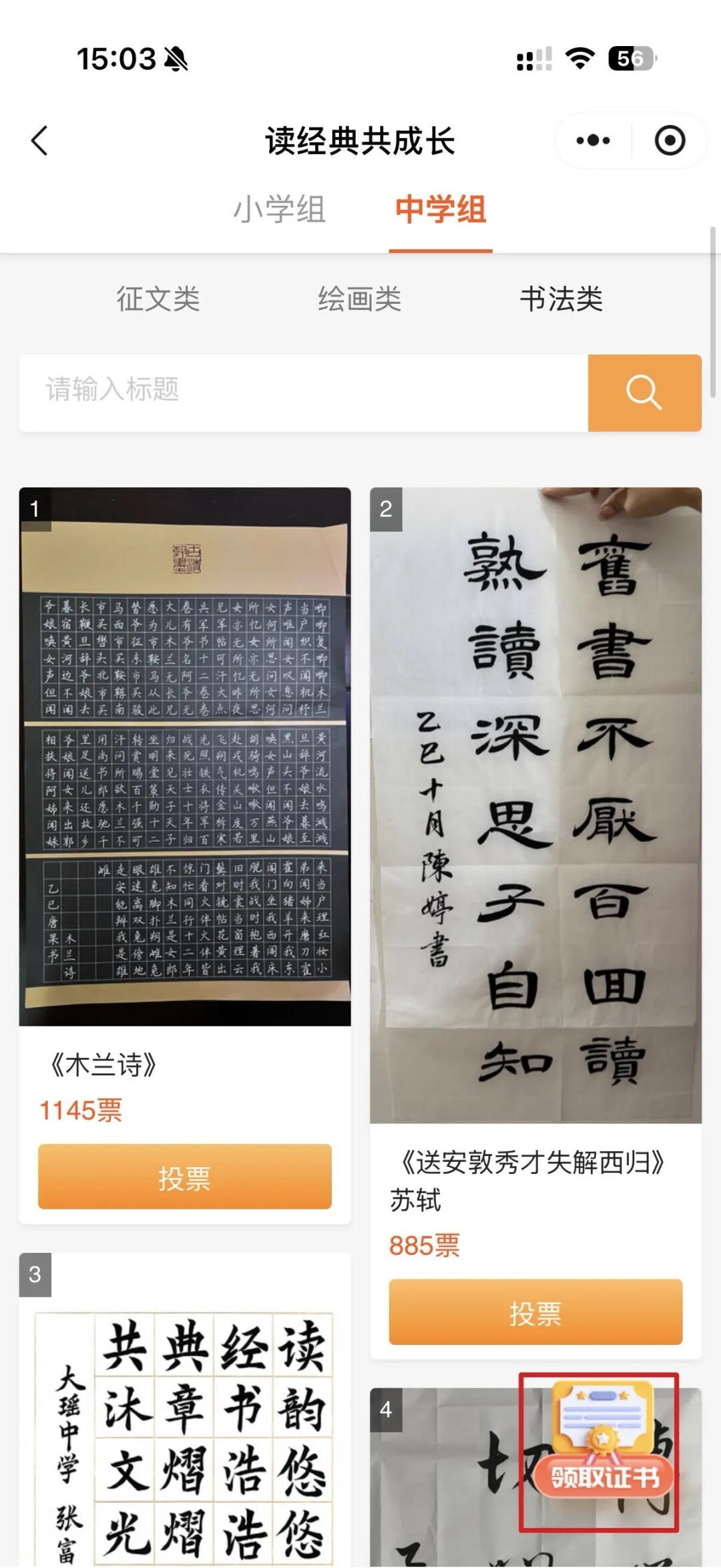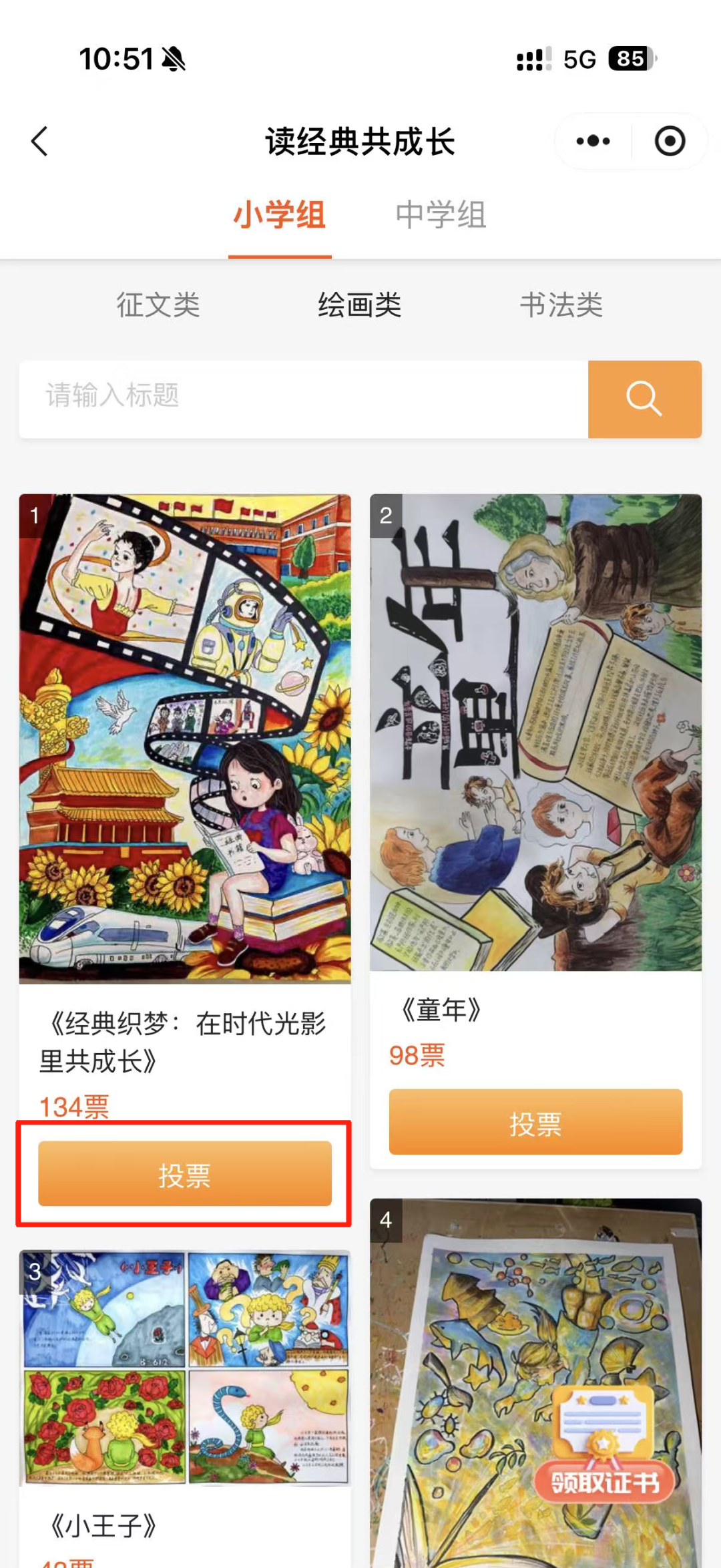 入围公示:所有入围作品都会在“读经典共成长”投票页面集中展示。