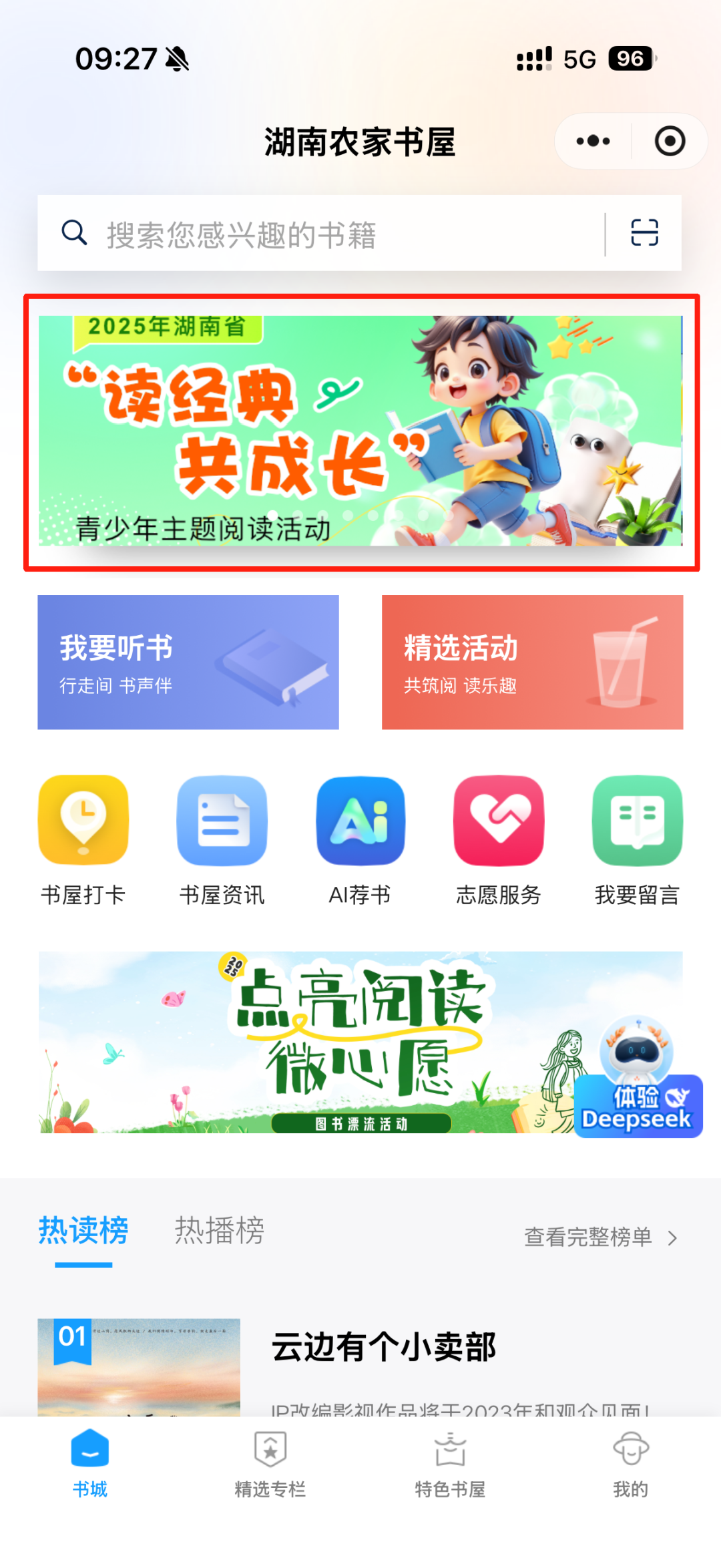 第二步:在小程序首页找到“读经典共成长”活动入口,点击进入;