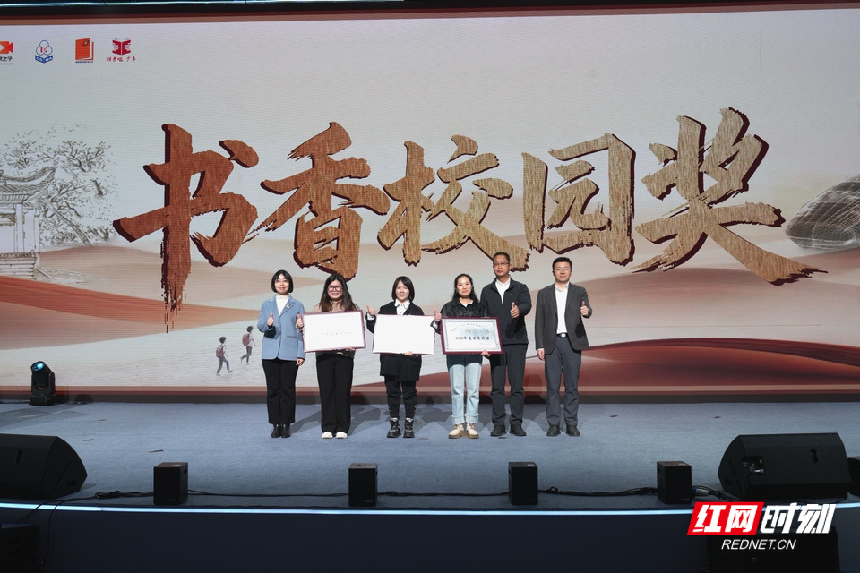 活动流程精彩纷呈,而贯穿其中的三轮颁奖典礼,无疑是全场最大亮点,一次次将现场气氛推向高潮。“书香园丁”与 “书香荐书官”奖项分别由来自全省多所学校的优秀师生代表获得,表彰了他们推广阅读的卓越贡献与乐于分享的优秀品质。而备受瞩目的集体荣誉——“书香校园”奖,经过对年度阅读活动参与度、创新性及整体氛围的综合考量,最终由长沙市弘益高中、岳阳第十中学、益阳世通学校三所学校夺得,它们以其出色的实践成果,成为了引领“书香湖南”建设的先进典范。