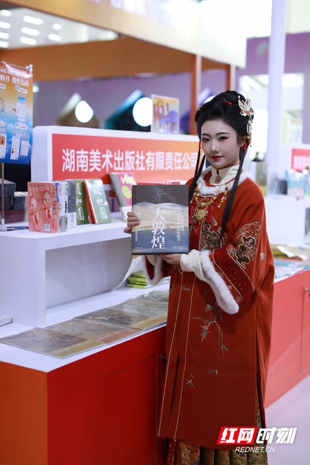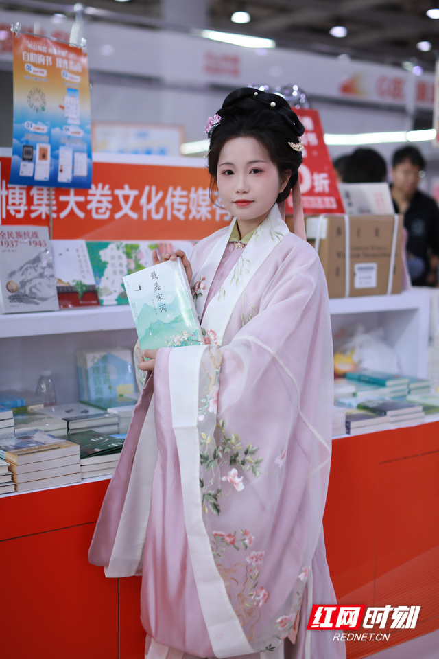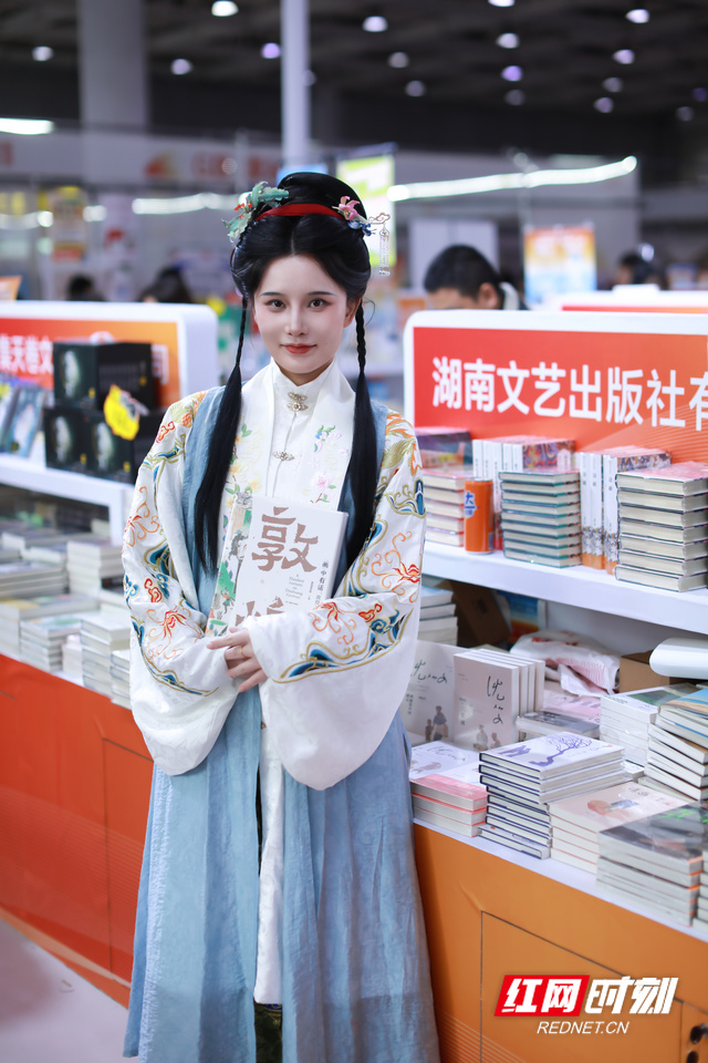 红网时刻新闻11月23日讯(记者 汪衡 摄影 李丹)11月22日,2025中国文学盛典·湖南文学周暨第四届岳麓书会正在火热进行。湖南优秀出版物展区内,七家湖南出版社的展台前,一群身穿汉服的小姐姐,将古籍的墨香与衣冠的锦绣编织成流动的文化长卷。