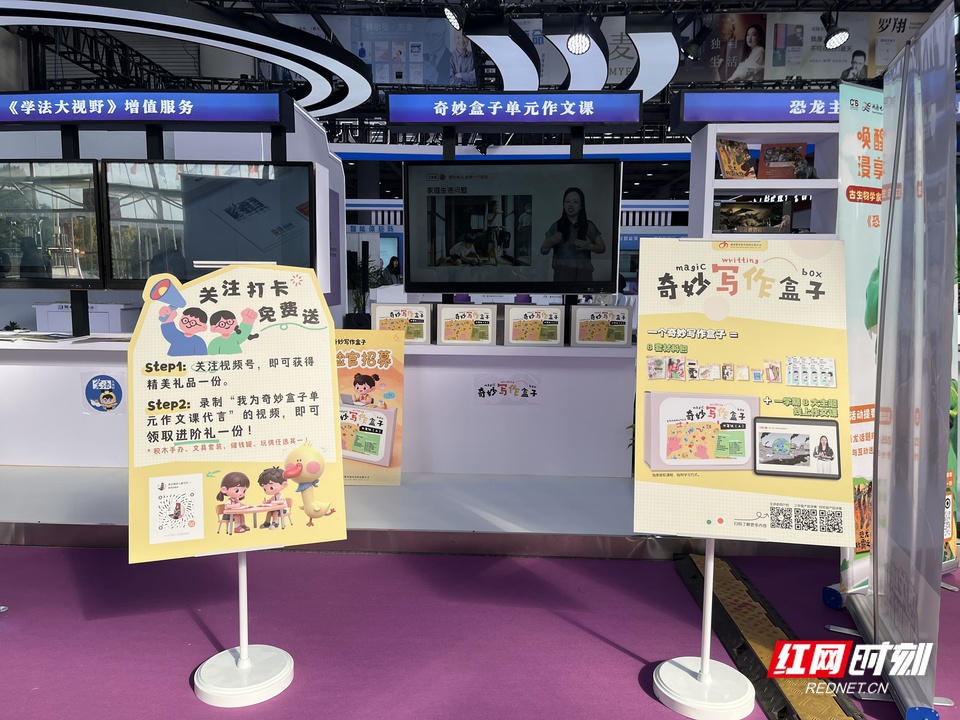 11月22日上午,由湖南教育报刊集团主办的“奇妙盒子”单元作文课产品说明会在湖南国际会展中心芒果馆数智出版展位举办。