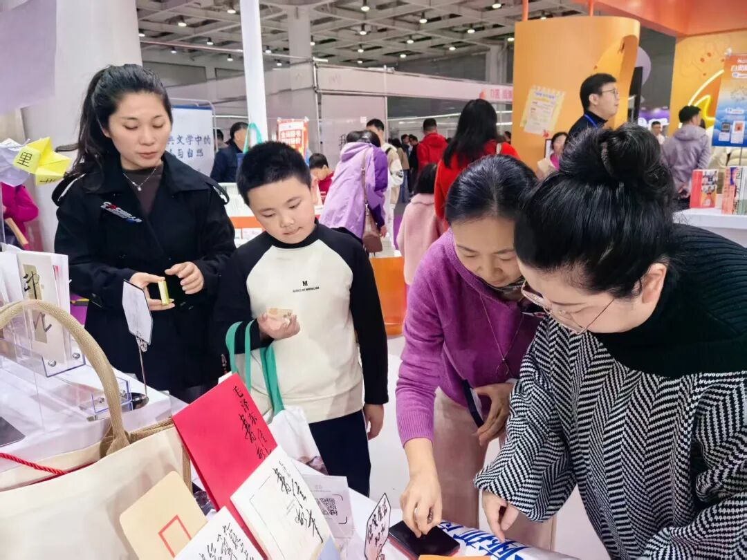 △岳麓书会上的刺绣书签吸引了各个年龄段的看展观众,不少人在展位前被刺绣书签吸引、驻足并购买。